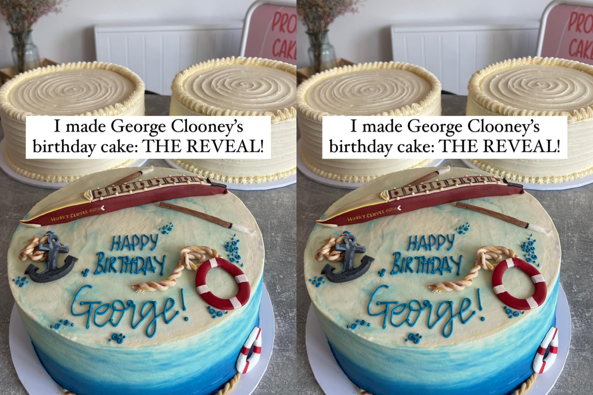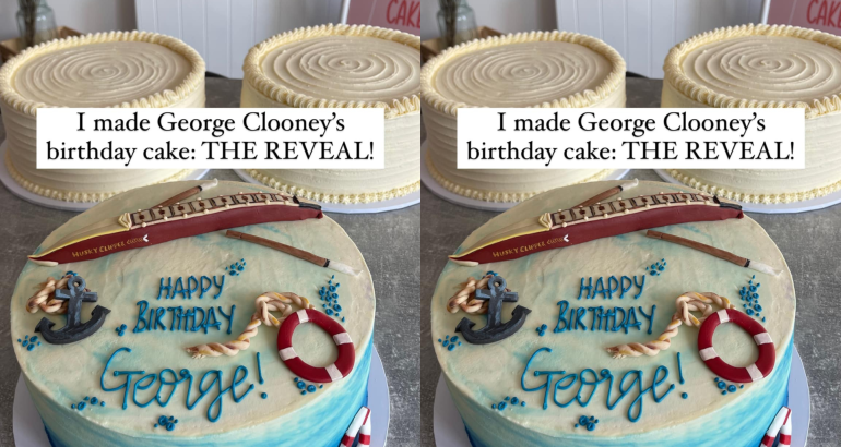 Jedini zahtjev za dekoraciju je bio da sadrži natpis: „Sretan rođendan, George“ i da bude na temu vode i vožnje čamcem, kako bi to bila poveznica s filmom „The boys in the boat“, čiji je režiser upravo Clooney, iako to u tom trenutnku nije znala.