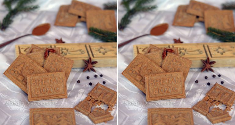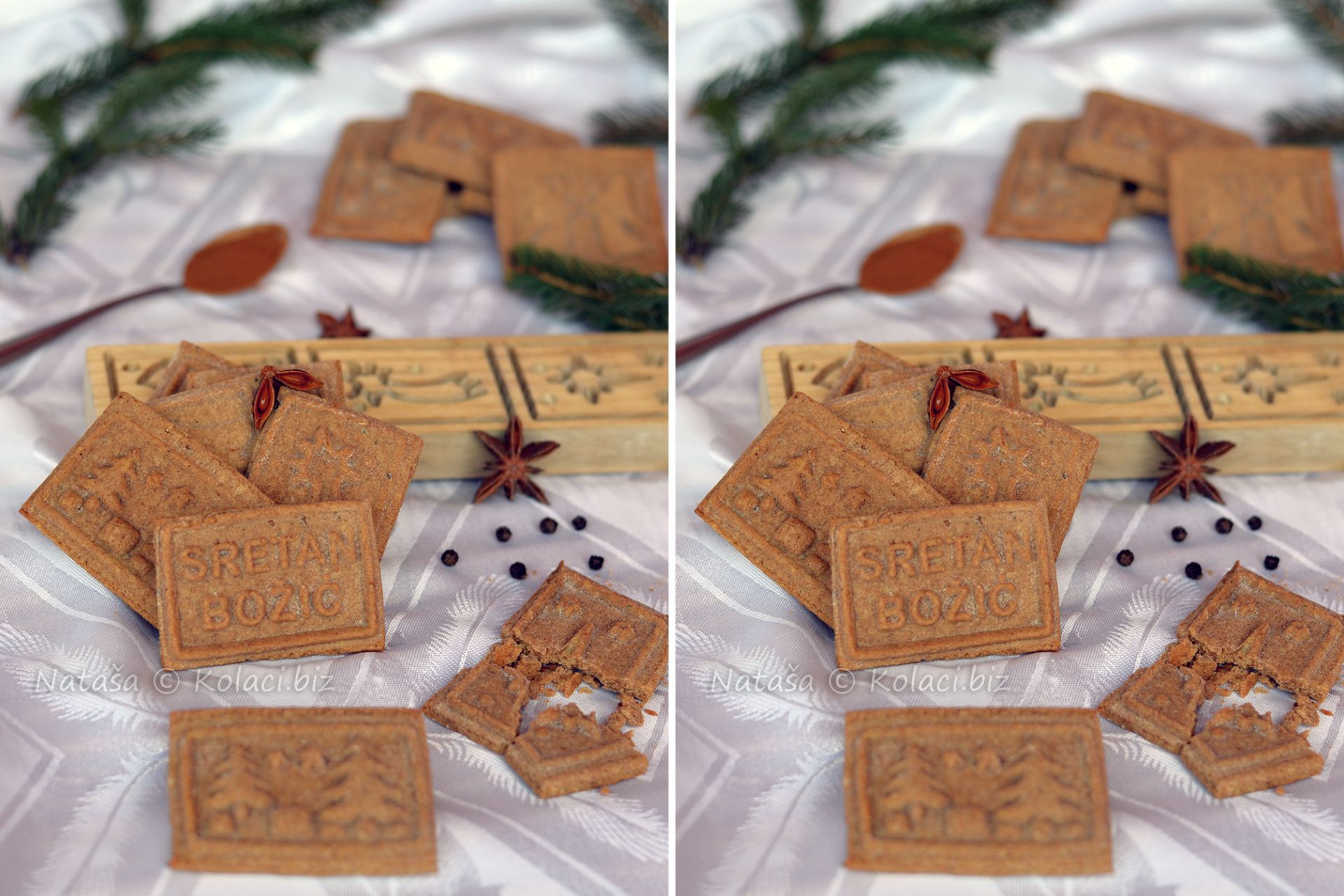 U zdjelu dodajte brašno, orahe, prstohvat soli, mljeveni cimet, mljevene klinčiće, mljeveni muškatni oraščić i mljeveni papar te sve zajedno pomiješajte. U drugu posudu stavite jaja, šećer, otopljeni i prohlađeni margarin i med, a zatim izradite mikserom. U posudi sa suhim sastojcima u sredini napravite udubinu i ulijte tekuće sastojke, sve sjedinite i umijesite tijesto. Od tijesta napravite lopticu, zamotajte u prozirnu foliju i stavite u hladnjak da se stegne 1-2 sata.