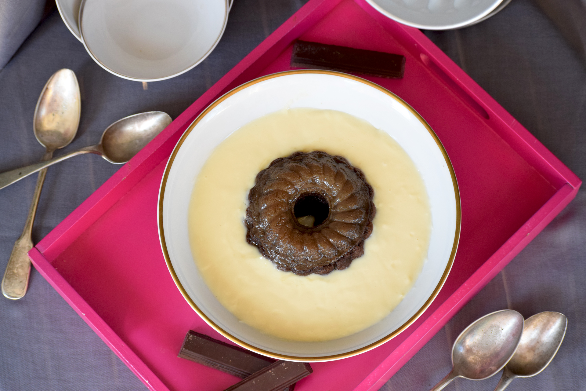 Ovo nije puding, nije ni mousse – ovo je nešto posebno – lagani desert od čokolade (koji se u mojoj obitelji uvijek zvao budin) utopljen u divnu kremu od vanilije – okusi koji se nadopunjuju i stvaraju savršen nedjeljni desert.