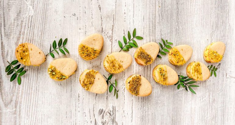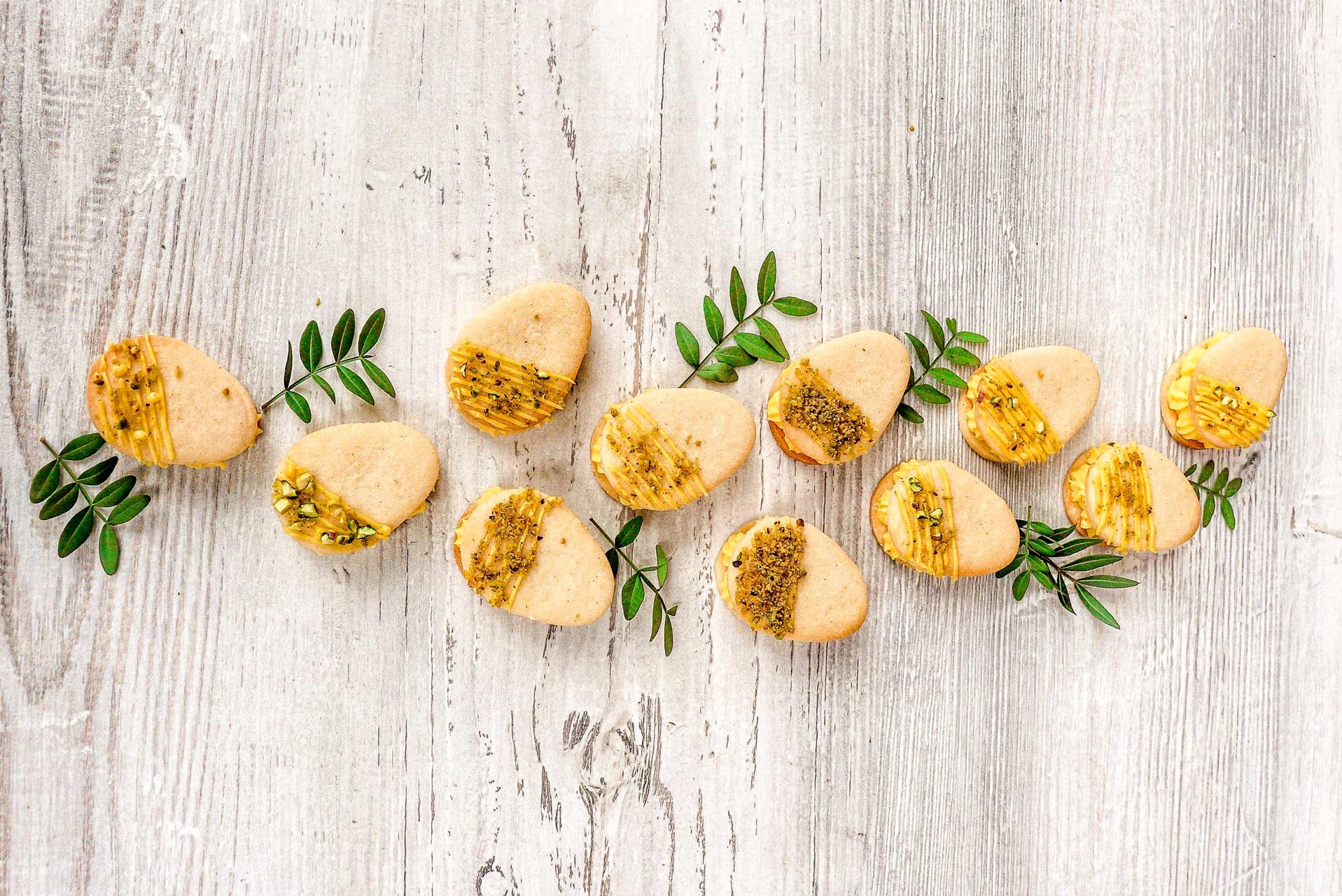 Ostatkom kreme i sjeckanom pistacijom ukrasiti kekse izvana.
