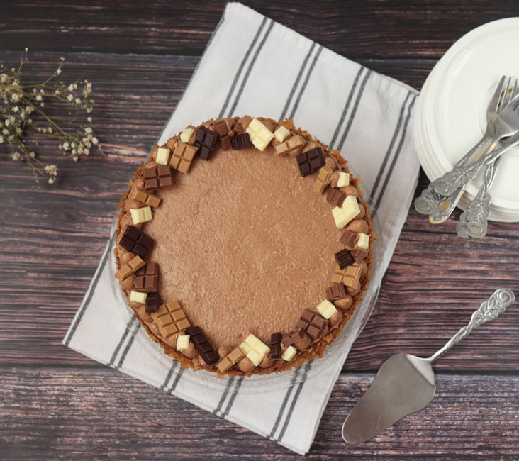 Slatko vrhnje zakipiti pa preliti preko izlomljene čokolade.