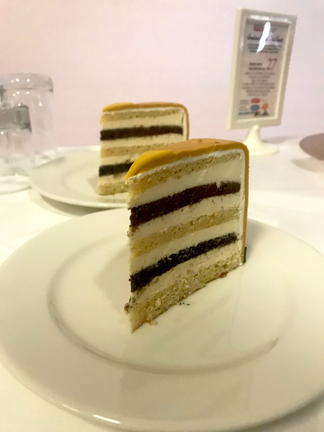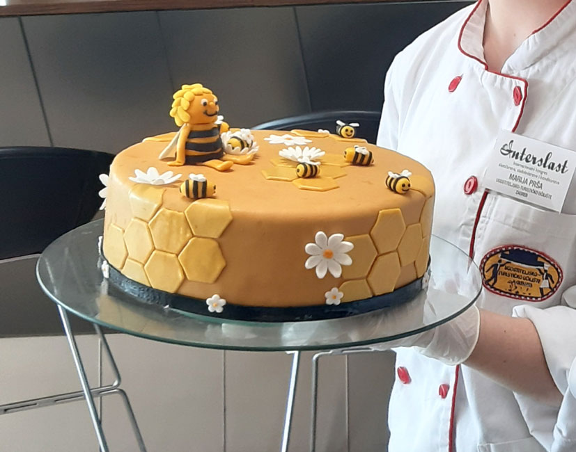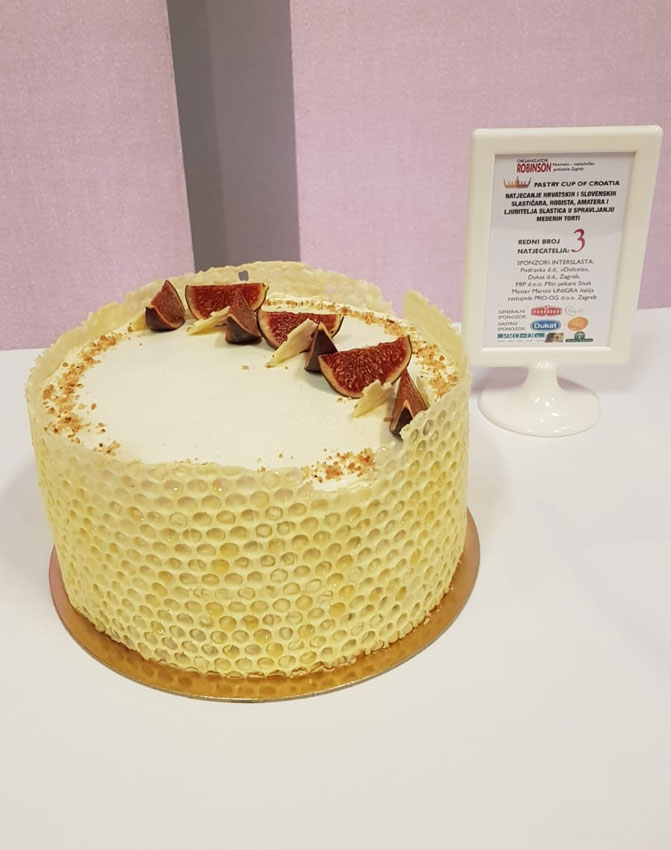 Njihova slastica na temu torta s medom napravljena je od kombinacije svijetlih i tamnih biskvita s kremom od bijele čokolade, mascarponea , meda i medice te je oduševila i izgledom i savršenim presjekom.