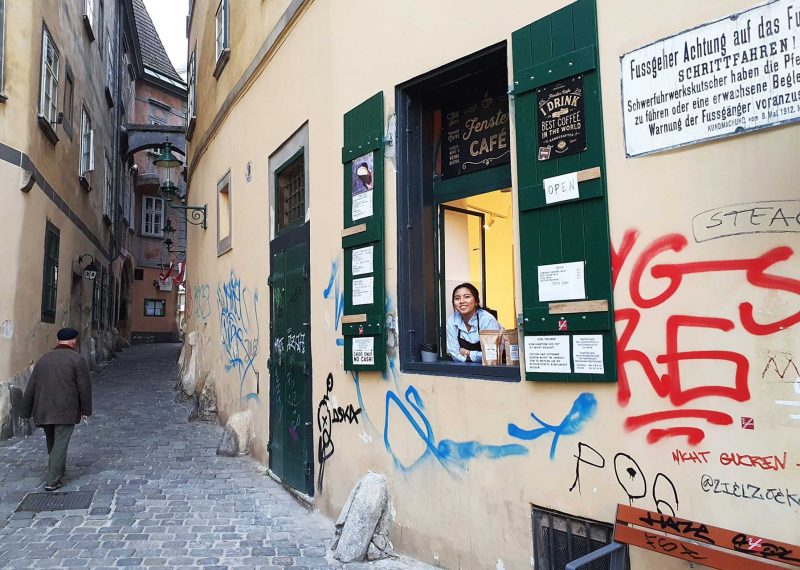 U jednoj malenoj bečkoj ulici, nalazi se kafić Fenster Café kojeg Bečani naprosto obožavaju. Kafić koji odskače od standarda nalazi se u 600 godina staroj kući, a budući da prostor toliko malen da u njega stane smo barista, svoje goste poslužuju kroz prozor.