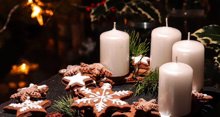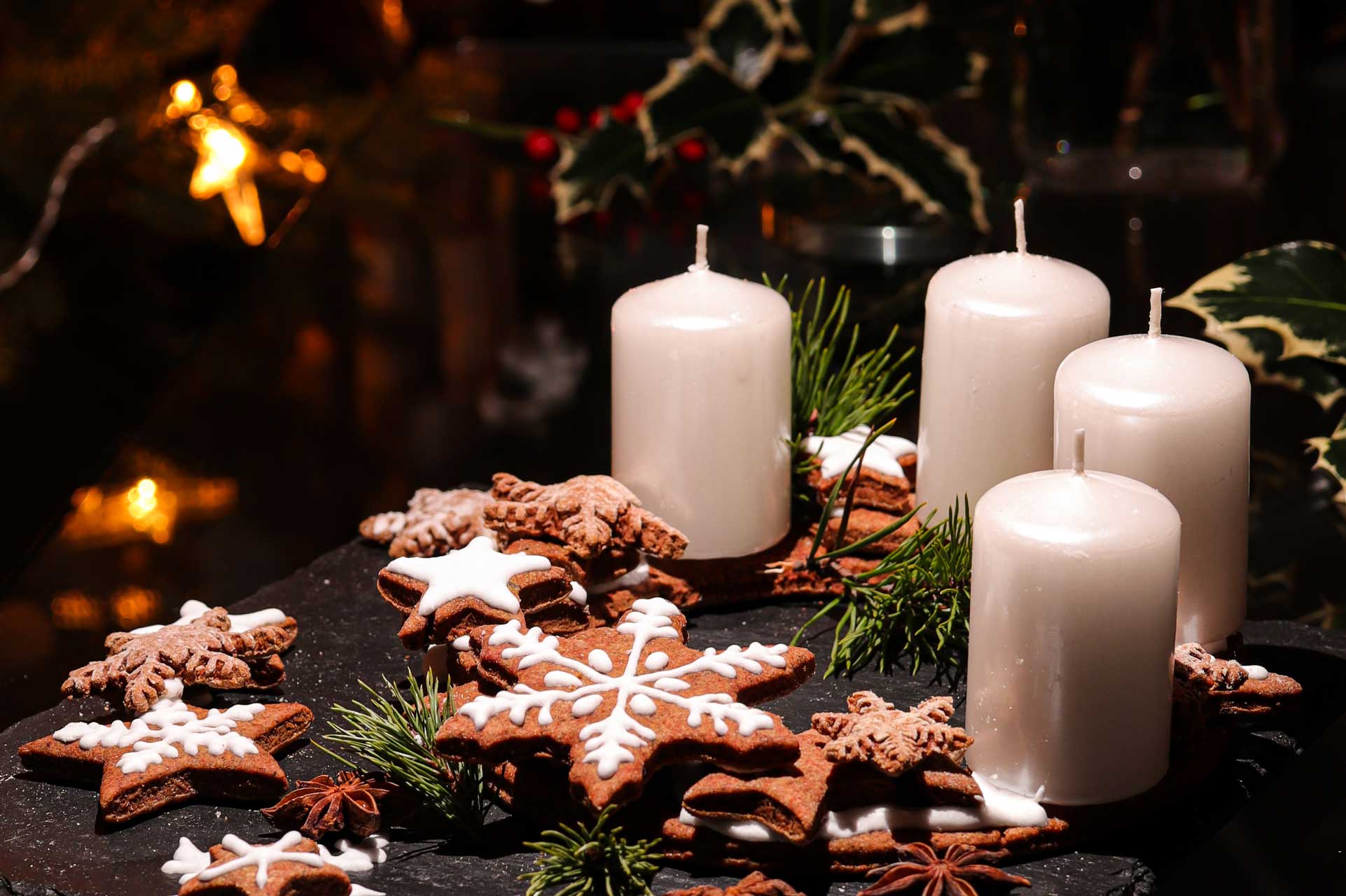 Ohlađene kekse ukrasiti glazurom od šećera i bjelanjka. Kada se glazura posuši slagati na kružnicu i lijepiti glazurom. Po želji ukomponirati u vijenac i svijeće.
