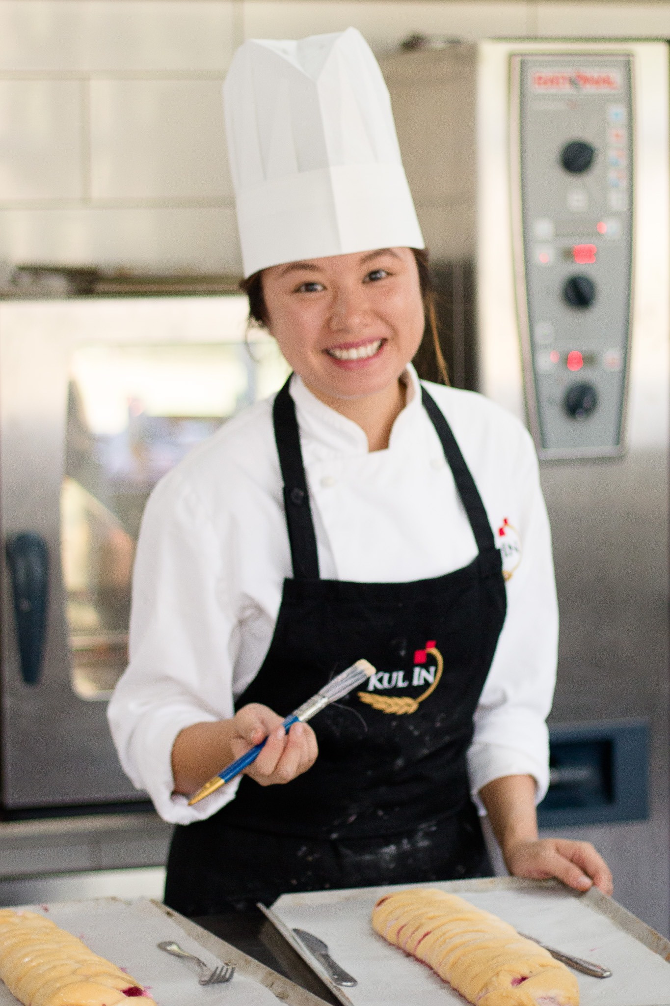 Ting: Početkom ove godine završila sam tečaj pekarstva u Njemačkoj zato što jako volim kruh. To je trajalo mjesec dana, a nakon završetka vratila sam se kući, gdje sam tražila posao u pekarama. Međutim, većina oglasa je bila za slastičara. Tako sam se zainteresirala za slastičarstvo i stvarno sam htjela naučiti više o slastičarstvu. Upravo zato odlučila sam potražiti škole u Europi. Nisam točno znala što želim, ali sam znala da želim ići negdje u Europu, a ne ostati kući, u Ujedinjenom Kraljevstvu. Tražila sam škole diljem Europe. Pronašla sam popis škola u Francuskoj, a čak sam gledala i u Aziji, na Tajlandu, ali sve je bilo preskupo. Konačno sam pronašla Kul IN – pregledala sam galeriju fotografija i stvarno mi se svidjelo kako izgleda i kako svi izgledaju sretno. Tako sam se odlučila prijaviti. Znala sam da želim brzo krenuti s tim, a novi tečaj je počinjao za dva mjeseca, čini mi se.