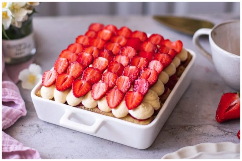 Prije posluživanja ukrasite tiramisu s ostatkom jagoda, narežite i poslužite. Tiramisu možete čuvati u hermetički zatvorenoj posudi u hladnjaku do 3 dana.