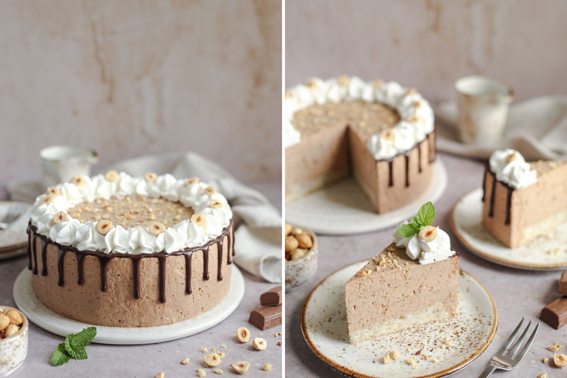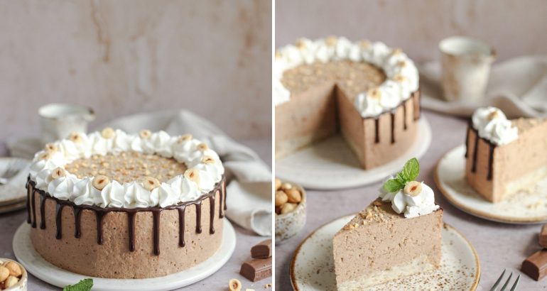 Sutradan skinite obruč i ukrasite tortu po želji. Ja sam napravila drip ganache glazuru samo oko stranica torte, a odozgo ukrasila izmiješanim slatkim vrhnjem i lješnjacima.