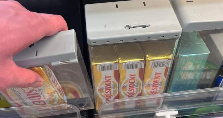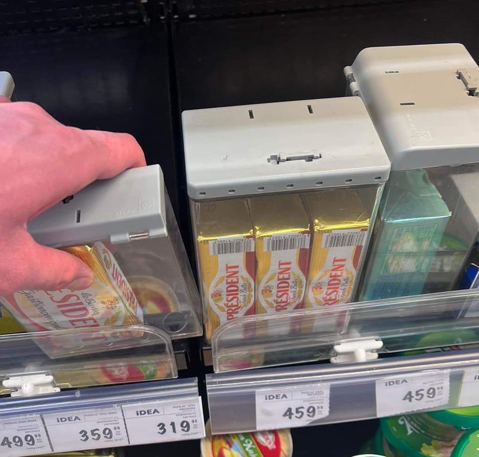 Iako nije uobičajeno da se prehrambene namirnice štite na ovaj način, maslac se pridružio brojnim skupim proizvodima koji se na policama trgovina nalaze pod elektirčnom zaštitom.