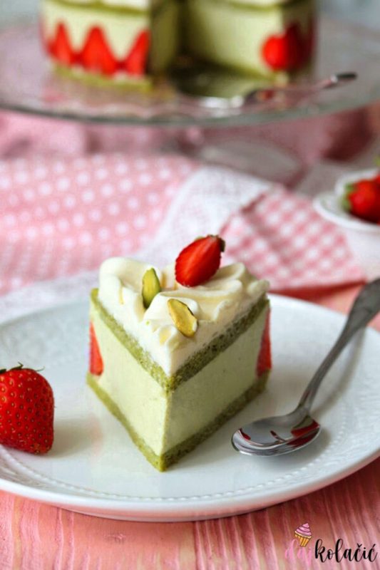 S bloga Daj kolačić autorice Lorene Mihelčić na naš portal stiže recept za tortu od pistacija i jagoda. Recept je za mali kalup pa autorica savjetuje da odmah poduplate sastojke.