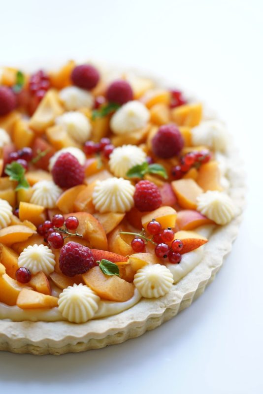 Ohlađeno tijesto za tart napunite kremom, prekrijte voćem po želji i ukrasite prema inspiraciji.