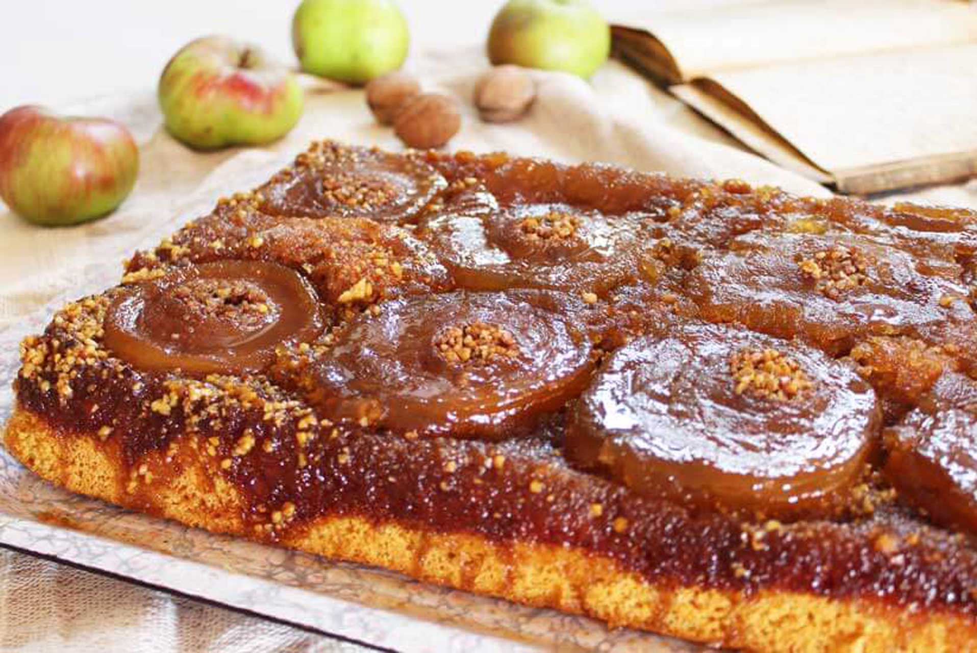 Ponovno smo zavirili u bogatu slatku riznicu recepata Jannette Razum na njezinom blogu Slatki svijet torti i kolača i tamo pronašli ovaj recept za prevrnuti kolač s jabukama i orasima.